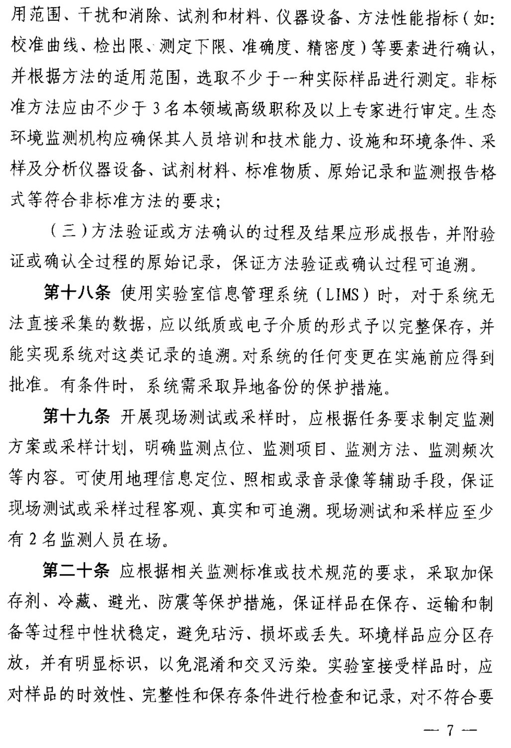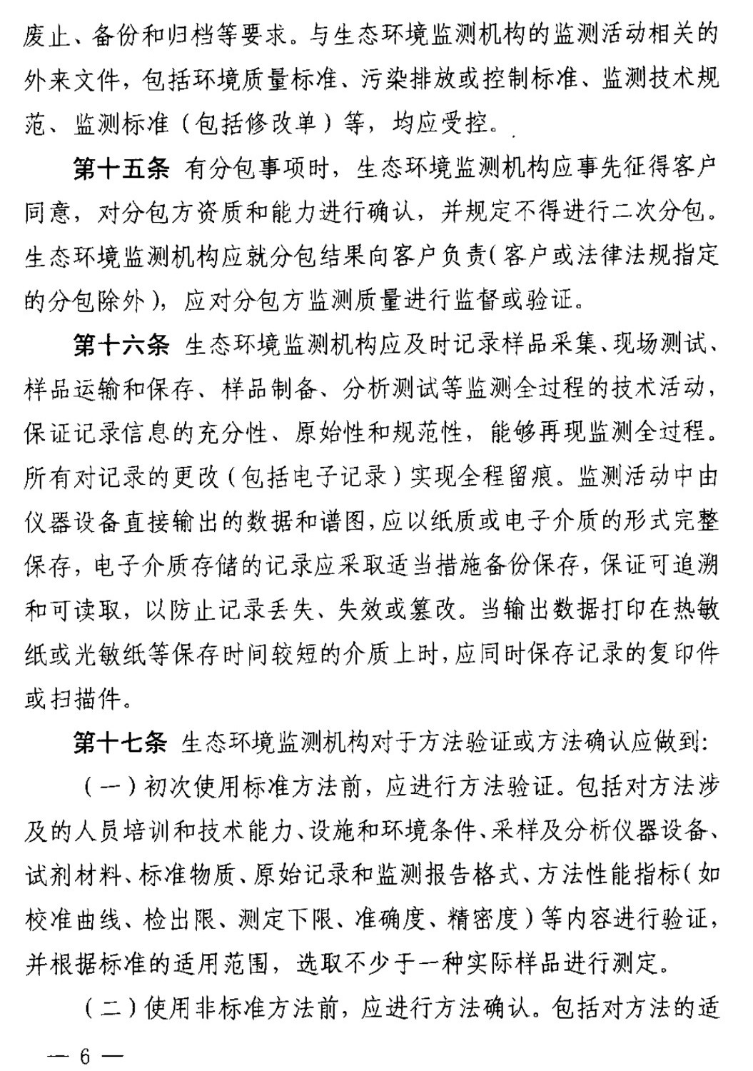 第十七條 生態(tài)環(huán)境監(jiān)測機構(gòu)對于方法驗證或方法確認應(yīng)做到: