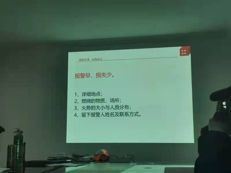 12月22日下午,政安消防再一次派指導(dǎo)老師到我司進(jìn)行消防安全知識的培訓(xùn)。經(jīng)過之前的幾次培訓(xùn),同事們對于消防安全已有一定的基礎(chǔ),在培訓(xùn)過程中對于老師的提問都給予了令人滿意的回應(yīng),受到老師的稱贊。也希望在后續(xù)能有機(jī)會進(jìn)行實(shí)地演練,讓大家能學(xué)會運(yùn)用所學(xué)到的知識而不是只停留在理論層面。